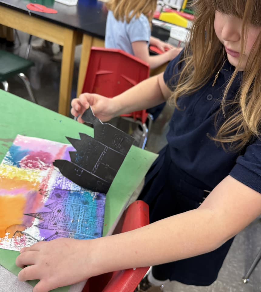 3rd/4th graders have been experimenting with printmaking in Art class. They have learned through trial and error what techniques work better than others.