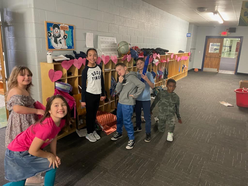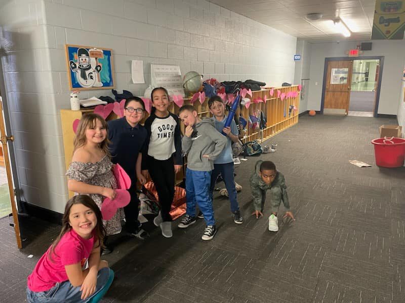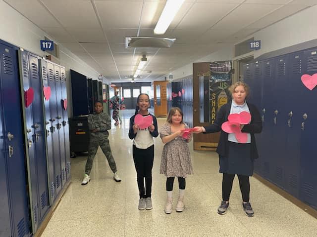 Service squad made Valentine’s and them decorated the school with them….