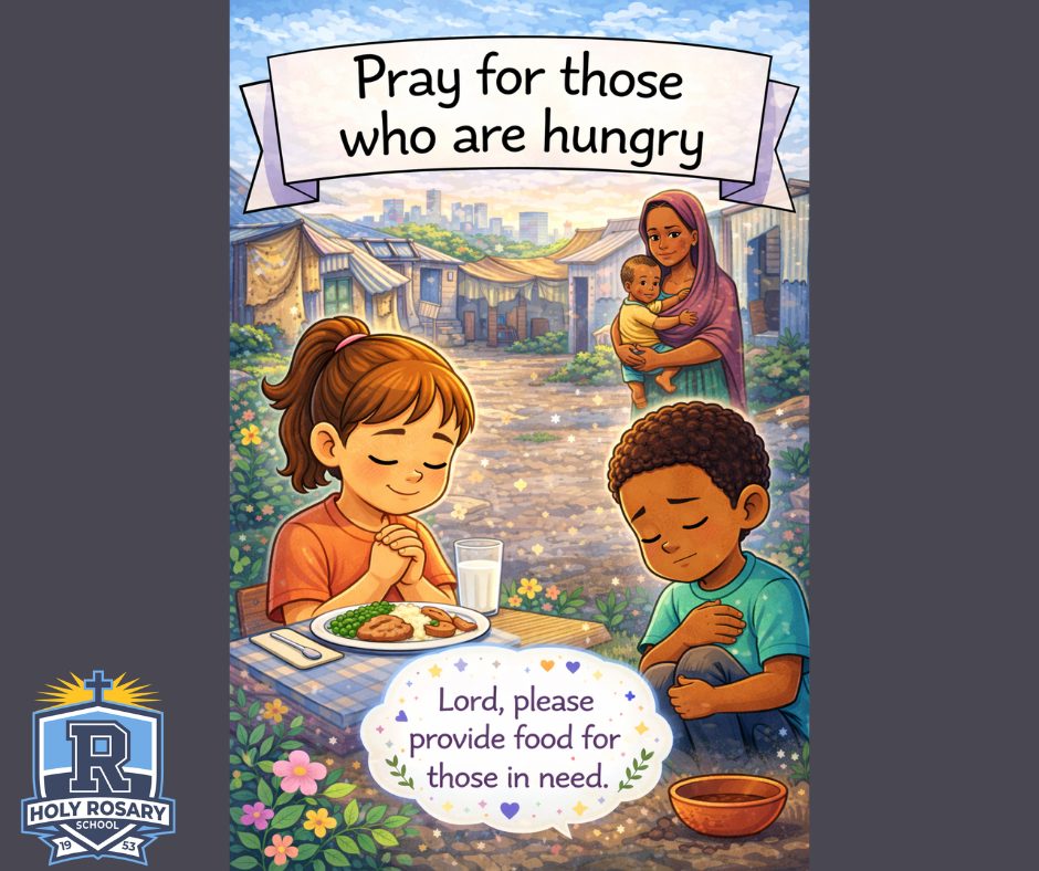 Today we encourage our students and families to remember those who do not have enough food to eat. Around the world and even in our own community, many families struggle with hunger.